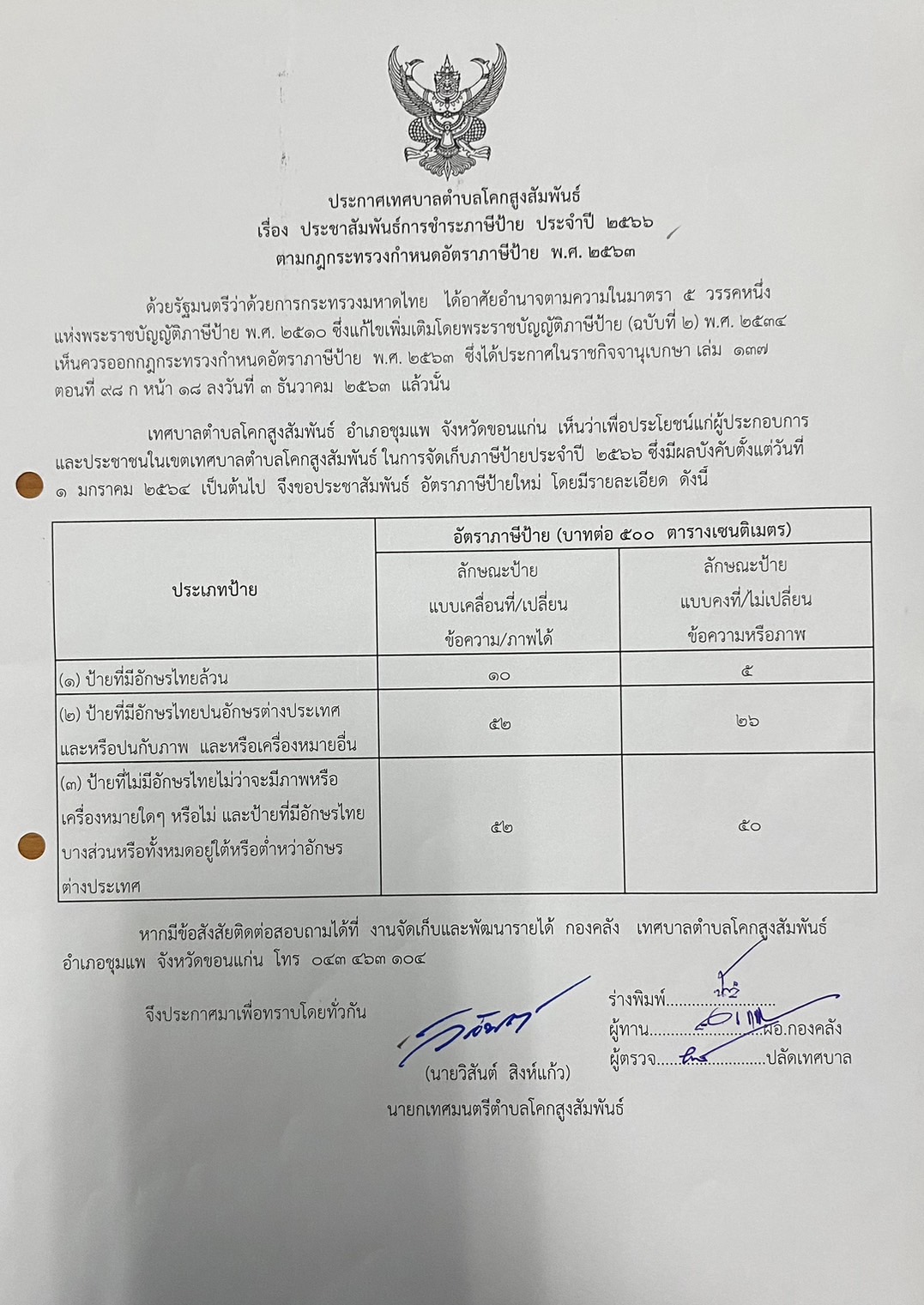 ประชาสัมพันธ์การชำระภาษีป้าย ประจำปี ๒๕๖๖