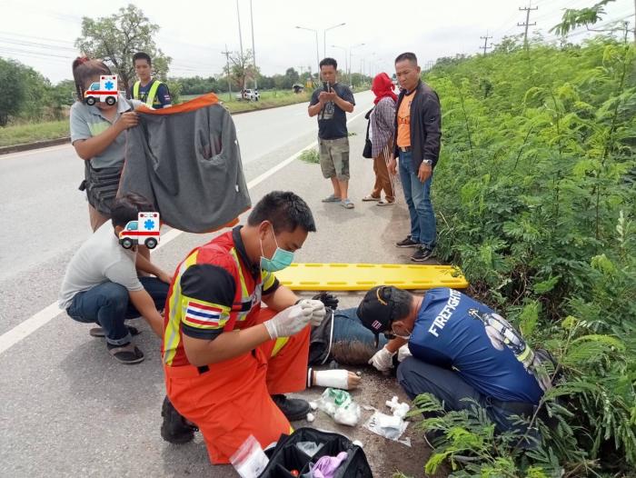 เทศบาลตำบลโคกสูงสัมพันธ์ ได้รับแจ้งจากประชาชนว่ามีอุบัติเหตุทางถนน บริเวณหน้าวัดอรัญญาวาส เจ้าหน้าที่งานป้องกันฯ พร้อมรถกู้ชีพ ออกปฎิบัติการพบเป็นชายวัยรุ่นขับขี่รถจักรยานยนต์ ผู้บาดเจ็บแจ้งว่ามีสุนัขวิ่งตัดหน้ารถ ทำให้เบรคกะทันหัน ส่งผลให้รถล้ม เจ้าหน้าที่กู้ชีพจึงได้ปฐมพยาบาลเบื้องต้น และนำส่ง รพ.ชุมแพ